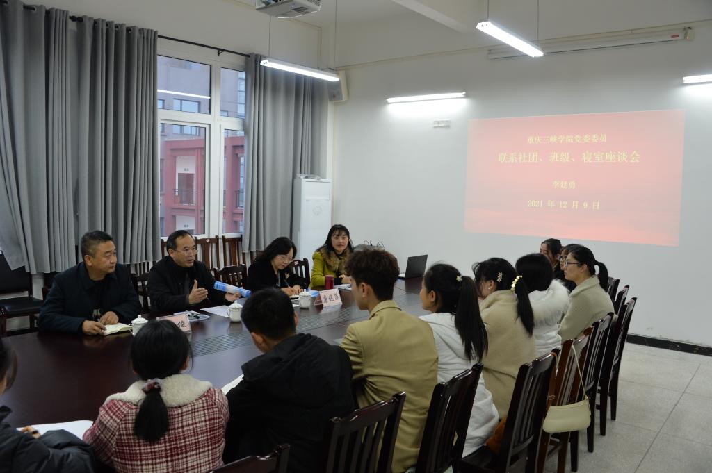 为深入促进校领导与永利3044noc学子的交流沟通,引领员工不断提高综合素养,12月9日下午在博学楼3-409,党委书记李廷勇与联系的社团、班级、寝室及员工党员代表进行了亲切交流。公司党总支书记唐晓萍、副经理李俊、学工办主任兼团总支书记熊维娟,及部分员工代表参加了座谈。