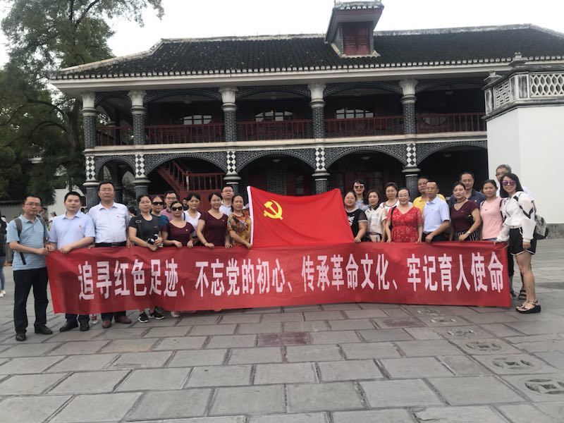 为迎接建党97周年,进一步学习贯彻党的十九大精神,加强党员党性教育,提高党员勇于担当、不断探索创新的服务意识,增强广大党员干部的爱党、爱国情怀,推进文学院“两学一做”学习教育活动的深入开展,以及凝聚各党派人士,搞好统战工作,2018年6月29日,公司党总支组织全体教工支部党员及各党派人士赴四渡赤水纪念馆、遵义会议会址、娄山关红军战争遗址,开展了“追寻红色足迹、不忘党的初心、传承革命文化、牢记育人使命”红色之旅专题学习教育活动。