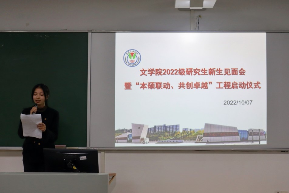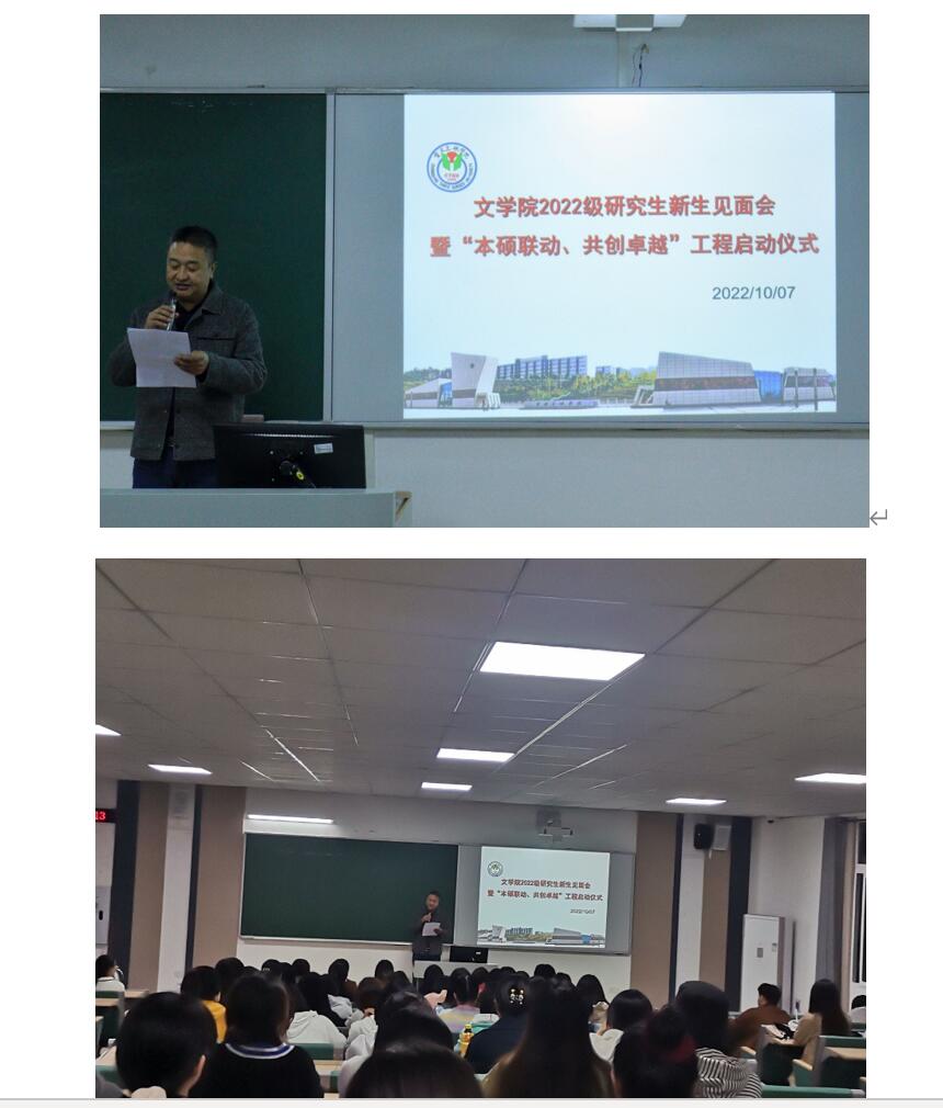 10月7日晚上,2022级研究生新生见面会暨“本硕联动、共创卓越”工程启动仪式在博学楼1栋401隆重举行。永利3044noc领导班子全体成员,永利3044noc硕士研究生导师代表范良芹,2022级本科生辅导员张悦,永利3044noc研究生辅导员王陈超,永利3044noc科研秘书李慧,永利3044noc研究生助理周小旭出席见面会暨启动仪式。2022级全体硕士研究生,2022级本科员工代表和代理班主任参加见面会。会议由永利3044noc副经理向学春主持。