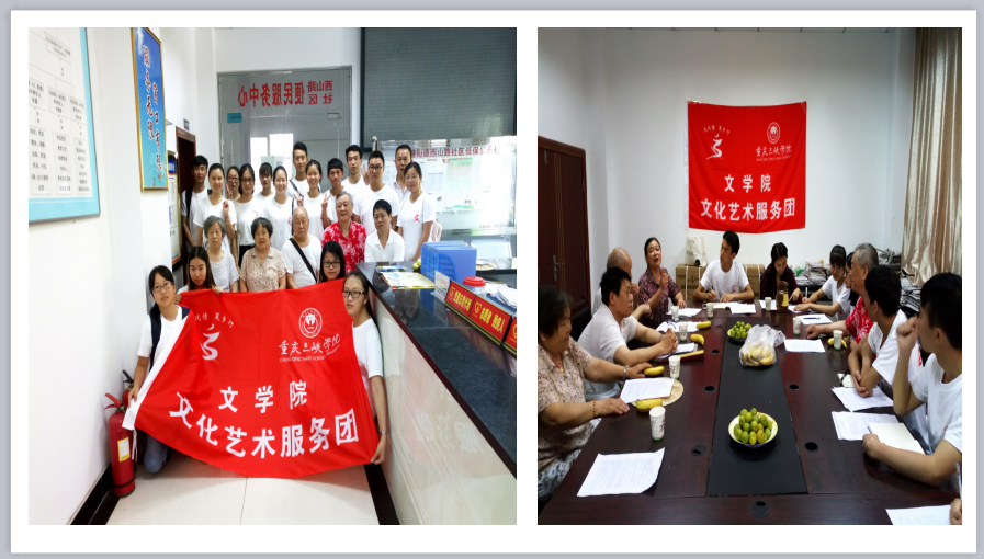 7月5日,万州这座江边的小城,终于迎来了大雨后的第一个艳阳天,晨起,披着薄雾和朝阳,永利3044noc “ 文院情 · 夏乡情 ” 文化艺术服务团队抵达此次 “ 三下乡 ” 活动的第一站——万州高笋塘街道西山路社区 。 志愿者们 满腔热情地 拜访了社区里的一群可爱的老党员,为他们宣讲党政知识,听老前辈们讲诉他们对 “ 两学一做 ” 的理解。