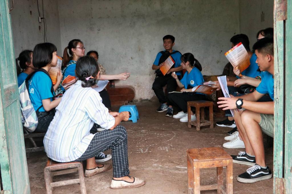 2018年7月9日,永利3044noc暑期“三下乡”彩虹人生服务团分别对赶场社区、老雄村、宏福村、官坝村进行“精准扶贫”政策知识宣讲。在两名村干部的带领下,队员们深入走访了贫困农户,向村民们普及精准扶贫政策。