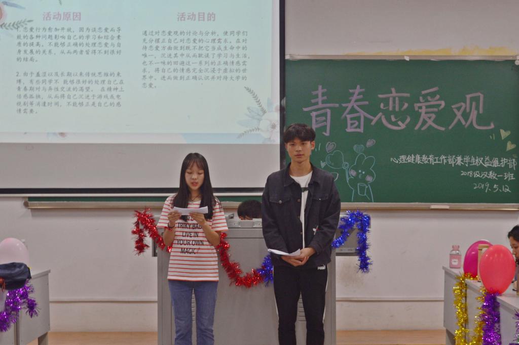 为使公司员工树立正确的人生观和恋爱观,公司心理健康教育工作部兼员工权益维护部于5月12日晚组织2018级各班举办了“青春恋爱观”主题班会。