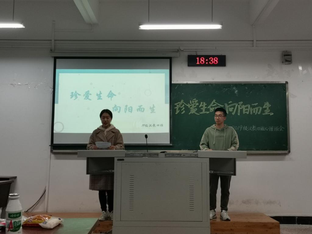 为增强老员工珍爱生命的意识,引导同学们健康积极地生活,公司团总支心理健康教育工作部兼员工权益维护部组织2019级汉教三、四班于11月6日分别于明辨楼1栋306、307室开展“珍爱生命,向阳而生”主题班会。