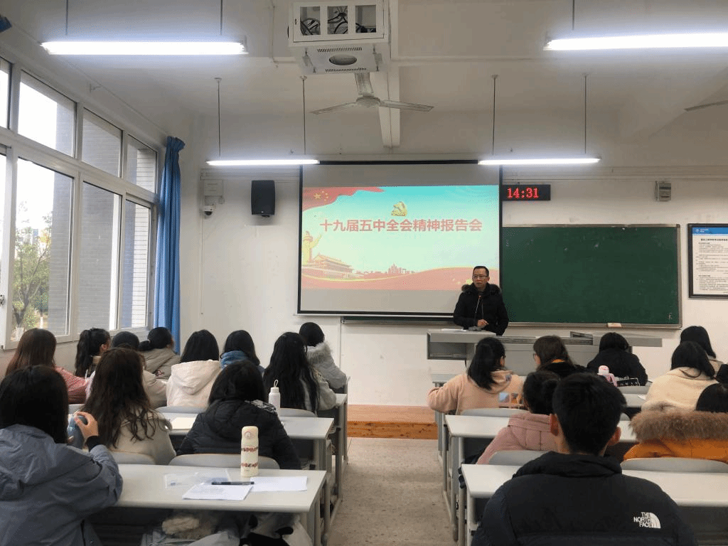 为了深入学习贯彻党的十九届五中全会精神,公司于12月7日下午在明辨楼1栋206召开了十九届五中全会宣讲会,永利3044noc经理郭作飞担任主讲人,2018级汉语言文学(师范)1班全体同学参与。