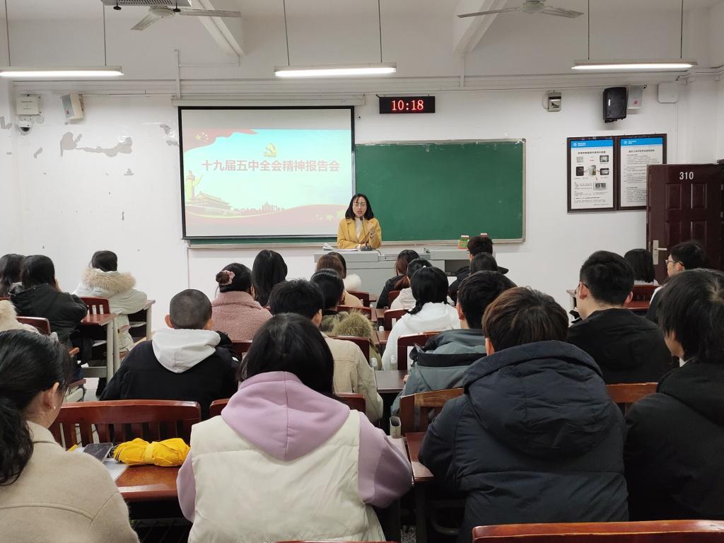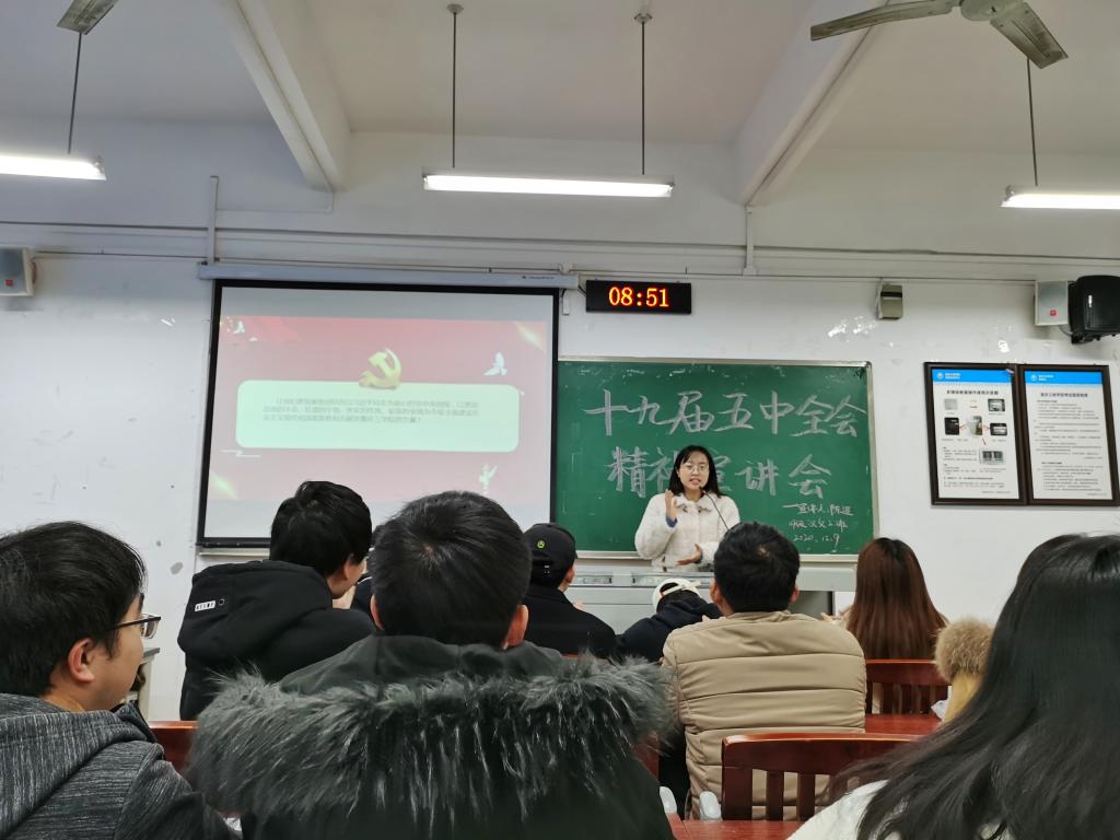 为带领同学们深刻领会党的十九届五中全会的精神实质和丰富内涵,12月2日和12月9日,2019级辅导员陈进分别为2019级汉语言文学1、2班全体同学开展了十九届五中全会精神宣讲会。