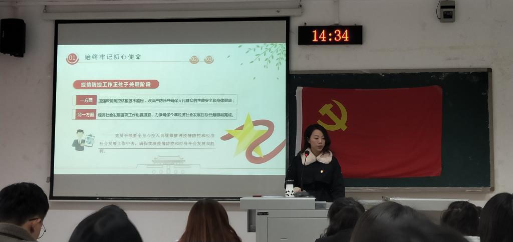 课上,姜希强调了此次新冠肺炎疫情在全国人民的艰苦努力下已初步呈现防控形势持续向好、生产生活秩序加快恢复的态势。但同时也要看到,一些地方的疫情形势依然不能掉以轻心,疫情反弹风险也不容忽视。面对这场没有硝烟、始料未及的“大战”,广大党员干部要增强必胜之心,勇当先锋、敢打头阵,用行动展现共产党人政治本色,坚决打赢这场疫情防控的人民战争、总体战、阻击战。