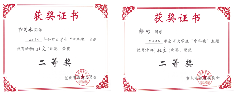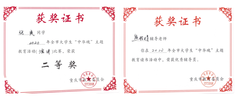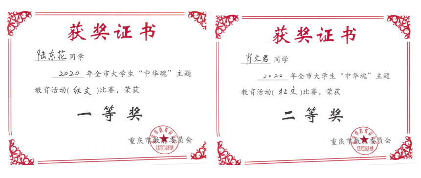 据悉,公司在近日重庆市教委关工委公布的2020年“中华魂”《科技托起强国梦》主题教育读书活动中喜获征文和演讲比赛多项荣誉。此次比赛分为征文比赛和演讲比赛,公司推优报送的5篇作品皆由永利3044noc学子创作,并全部获奖,公司熊维娟老师获优秀辅导员称号。征文比赛中,公司2018级汉语言文学(师范)3班陆冬花荣获一等奖;2018级汉语言文学(师范)3班阳芃冰荣获二等奖、2018级汉语言文学(师范)2班肖文君和2018级汉语言文学(师范)4班杨怡荣获二等奖。演讲比赛中,2019级级汉语言文学1班张爽荣获二等奖。