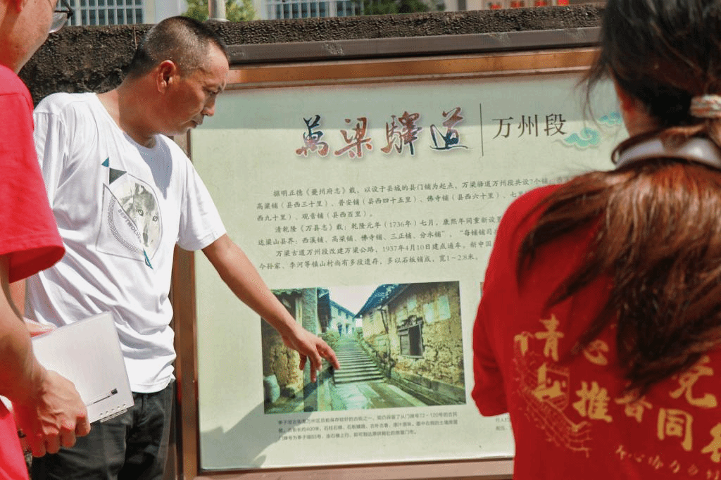 文书记带着实践团成员来到了万梁古道经过处,并向大家详细地介绍了万梁古驿道的历史渊源。虽然古道已被水泥覆盖,但行走在上面,大家依然能够感受到古道厚重的历史底蕴。