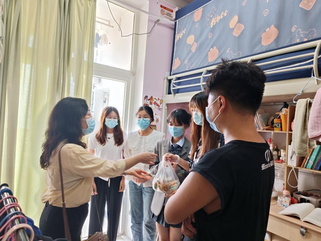 在公司疫情常态化管理及中秋节即将来临之际,永利3044noc始终坚持以员工为本,为让在校员工能感受到祥和愉悦的节日氛围,9月9日下午14:30,公司党总支书记唐晓萍、副书记、副经理马婷、副经理向学春带领全体辅导员前往集中健康观测楼栋及本科、研究生员工寝室慰问并送上月饼和节日祝福。