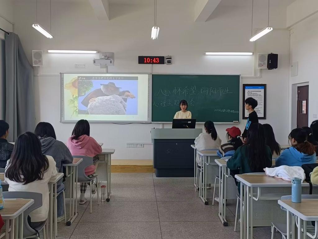 此次班会活动通过PPT解说、视频播放、组织游戏等形式展开。班会内容涵盖员工常见心理问题、心理健康判断标准、心理问题解决方法、人生价值取向导航等多个方面,并让同学们就心理健康问题进行讨论分享。