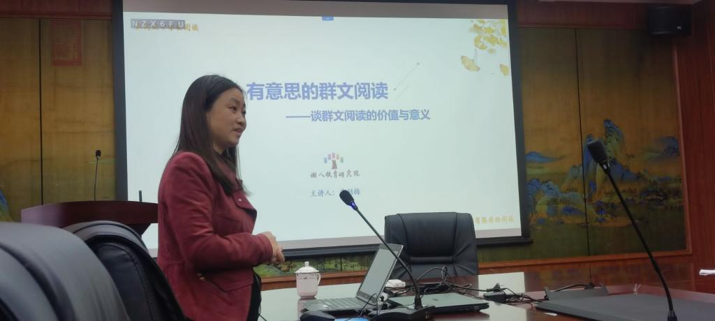 为进一步深化公司教师培养模式改革,建立高校与企业协同培养新模式,着力培养出一批师风良好、师德高尚,具有扎实学科专业功底、公司产品能力和自我创新发展能力突出的高素质、专业化中小学语文学科教师,公司与树人教育研究院合办的“卓越—树人教师班”第三期于2022年10月27日下午3:00开讲,树人教育研究院副经理黄利梅主讲的《有意思的群文阅读——谈群文阅读的意义与价值》圆满结束。黄经理同时也是树人教育研发中心主任、《学语文之友》杂志总编辑。永利3044noc“卓越—树人教师班”全体学子聆听了课程。