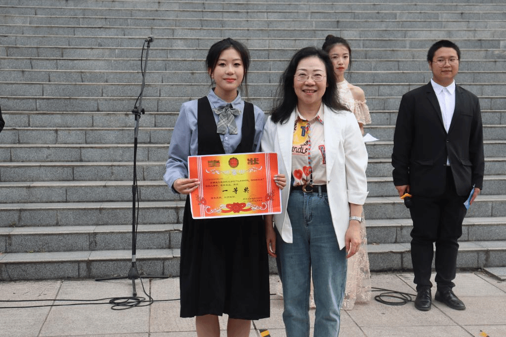 在本次班歌大赛上,各参赛班级按照抽签顺序依次上台表演:澎湃热血的《精忠报国》、抒情和缓的《淋雨一直走》、青涩柔和的《昨日青空》……袅袅歌声在半空萦绕,一句句歌词、一首首音律,唱出的是莘莘学子的青春之声,吟诵的是班级之间的良好班风,传递的是文院师生的深厚情谊。待各班演唱完毕后,唐晓萍书记对此次比赛进行点评,不仅对各班表演作出公正的评价与认可,更激励同学们要争当敢做、敢说、敢想的青年老员工,充分发挥少年当自强的精神魅力。根据评分标准,颁奖嘉宾为获奖班级颁奖并与获奖班级代表合影留念。本次“礼赞新时代,唱响新未来”班歌大赛在嘉宾与参赛班级的合照定格中圆满结束。