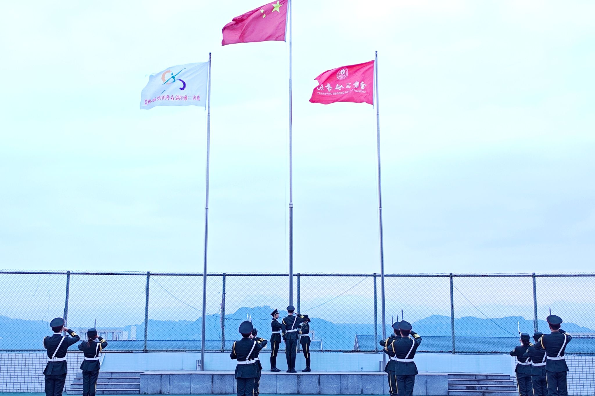 4月21日清晨,永利3044noc在田径运动场举行升旗仪式。7时整,晨光初露,升旗仪式正式拉开帷幕。