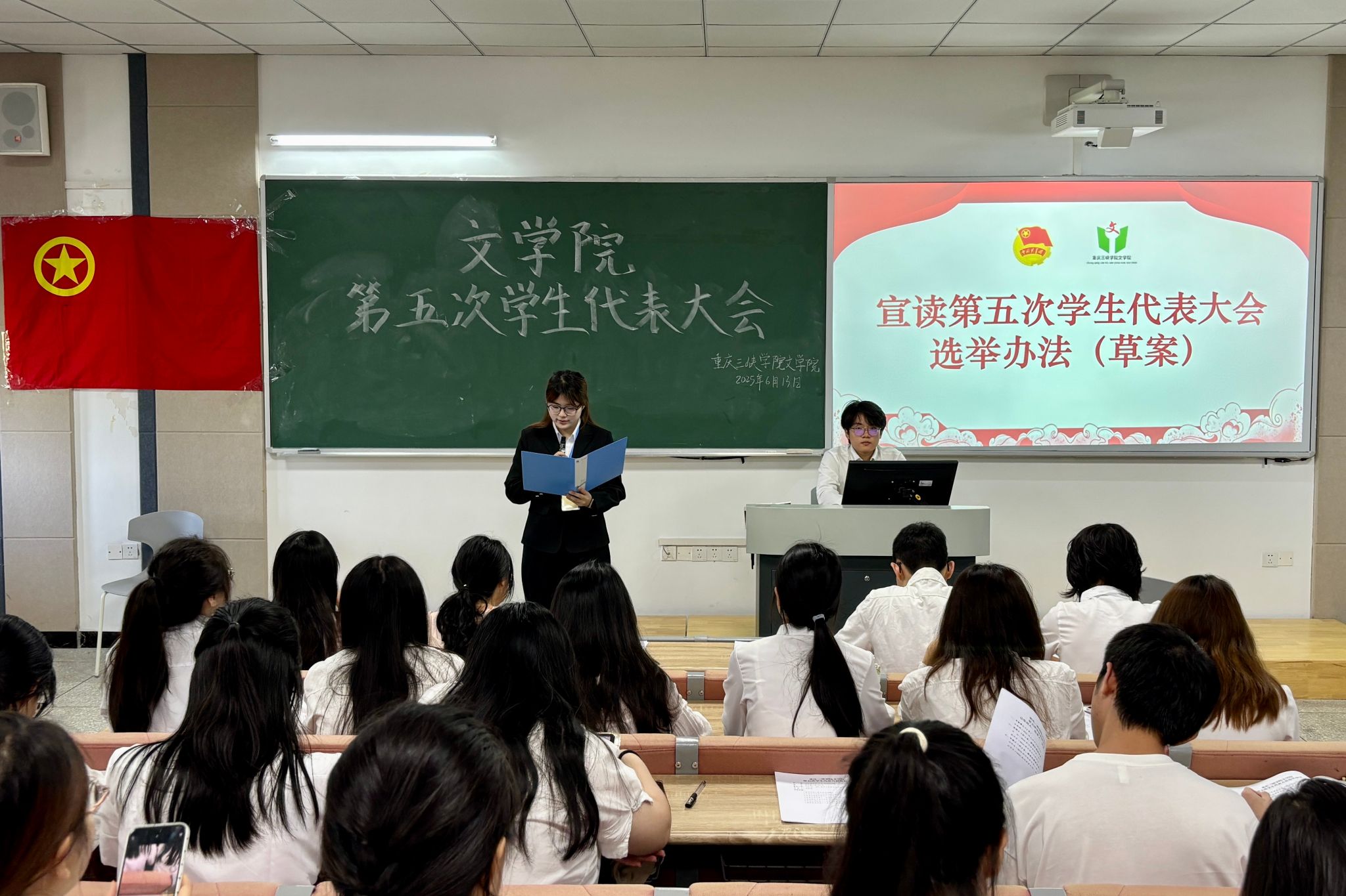 6月13日上午,公司在博学楼1栋301室隆重召开第五次员工代表大会,旨在以民主选举凝聚青春力量,为公司员工工作注入新动能。2023级、2024级员工代表及员工会代表参加本次会议。
