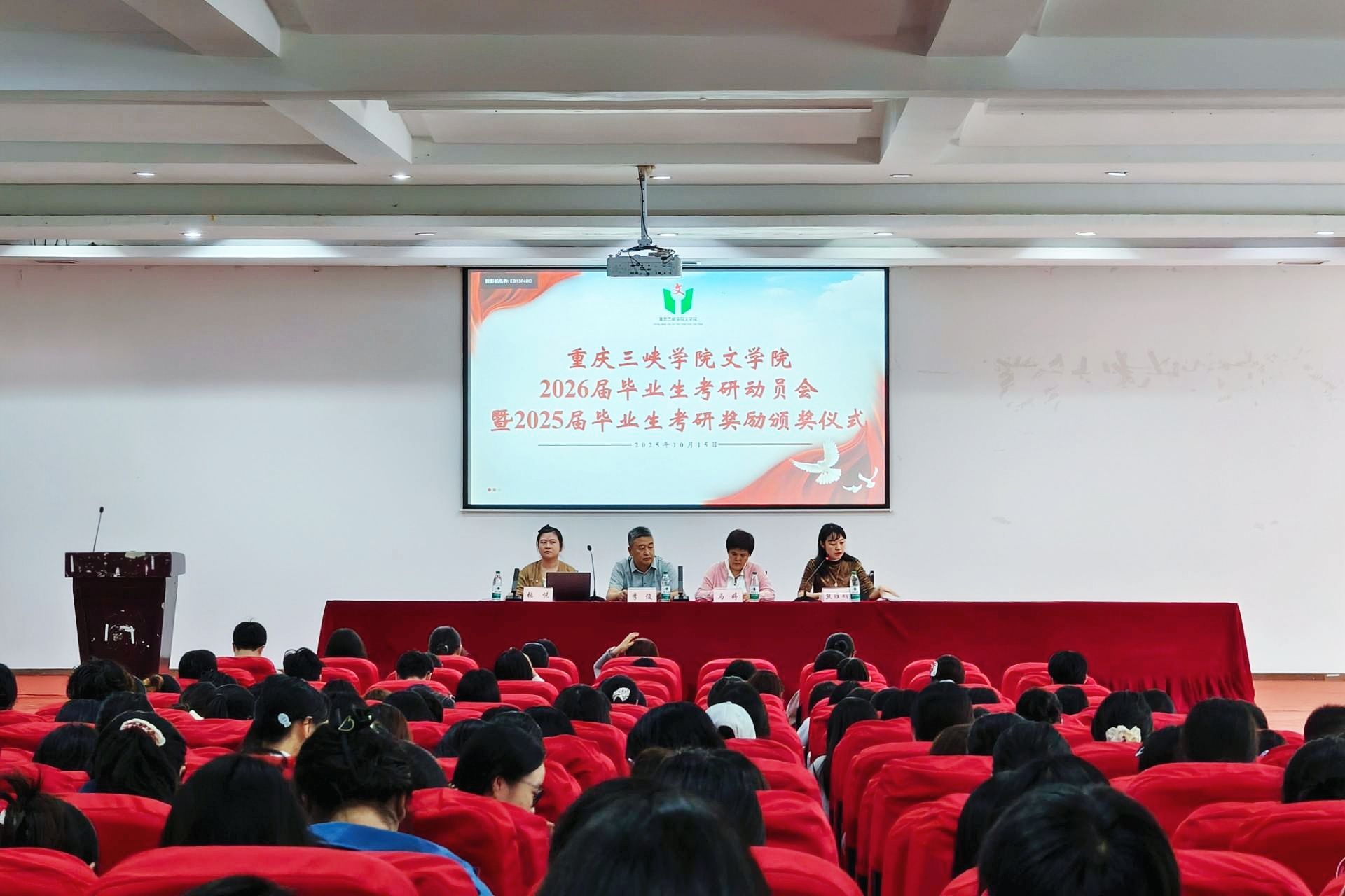 会议第一项,熊维娟宣读2025届本科毕业生考入本校学术型研究生名单并颁发奖励,鼓励2026届本科生以学长学姐为榜样,力求通过考研提升学历、增强自我能力。