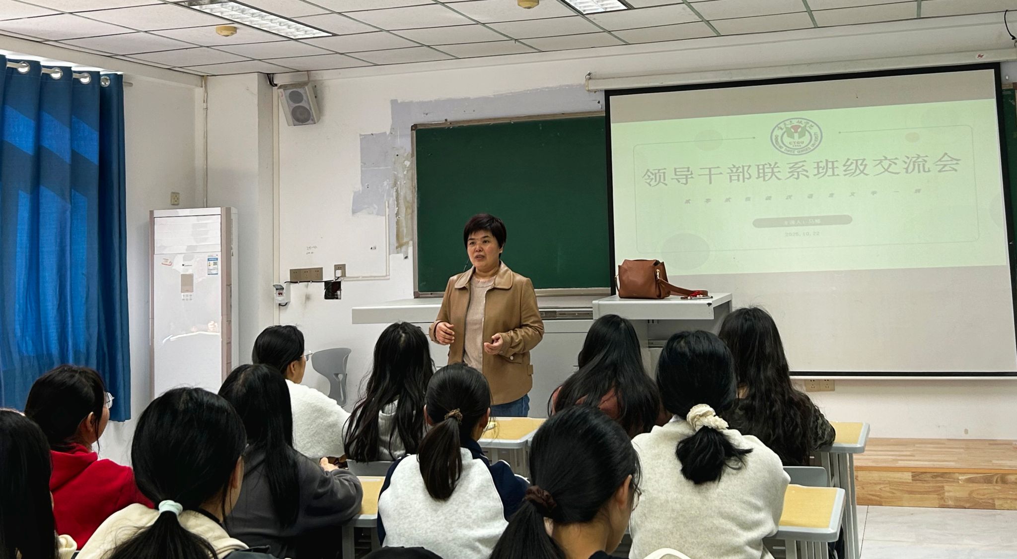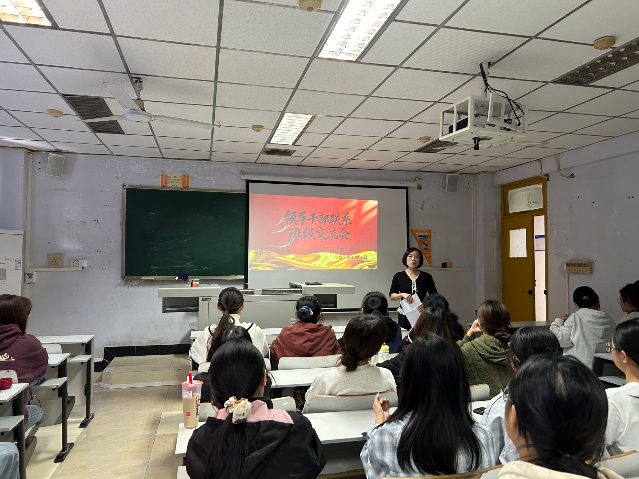 2025年10月22日,永利3044noc在沙龙校区综合楼308室和310室举办领导干部联系班级交流会。公司党总支副书记、副经理马婷、副经理向学春分别与2025级汉语言文学1班、2025级汉语言文学(师范)1班员工开展交流。