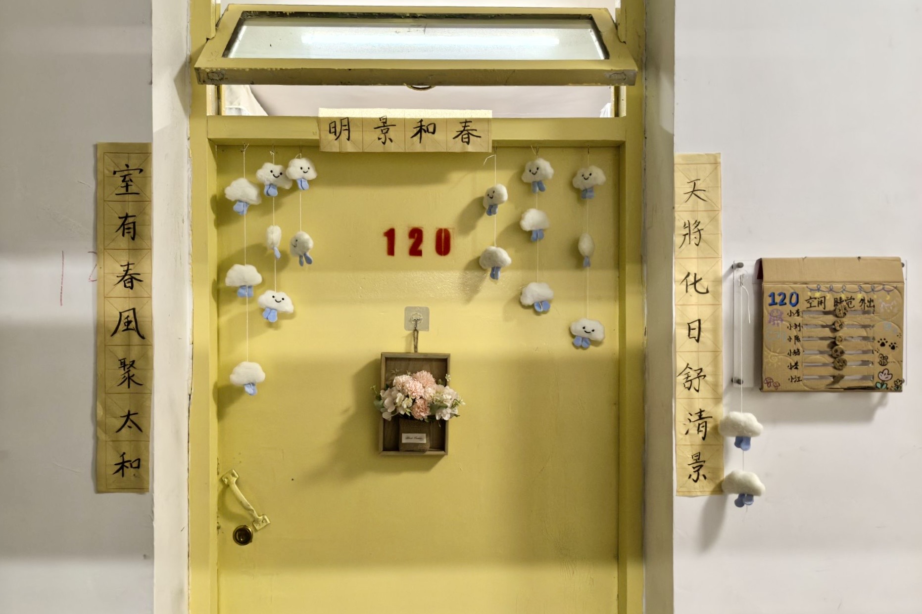 本次活动要求参赛寝室紧扣积极向上主旋律,用独特创意打造专属寝室空间。活动前期,生活实践部通过线上班级群推送、线下宿舍区张贴海报等方式宣传,充分调动2025级新生参与热情。活动期间,同学们各展所长,巧手匠心。有的寝室利用环保材料制作温馨挂饰和创意门牌。有的寝室绘制了蕴含专业特色的诗词墙画。同学们将寝室从简单的住宿空间改造成充满个性的“温馨小家”。10月24日至26日,评审人员走进沙龙校区新生宿舍,围绕创意、氛围、文化等核心维度打分。最终,6个在创意、协作和美感上尤为突出的寝室脱颖而出,荣获“最美寝室奖”、“优秀创意奖”等奖项。