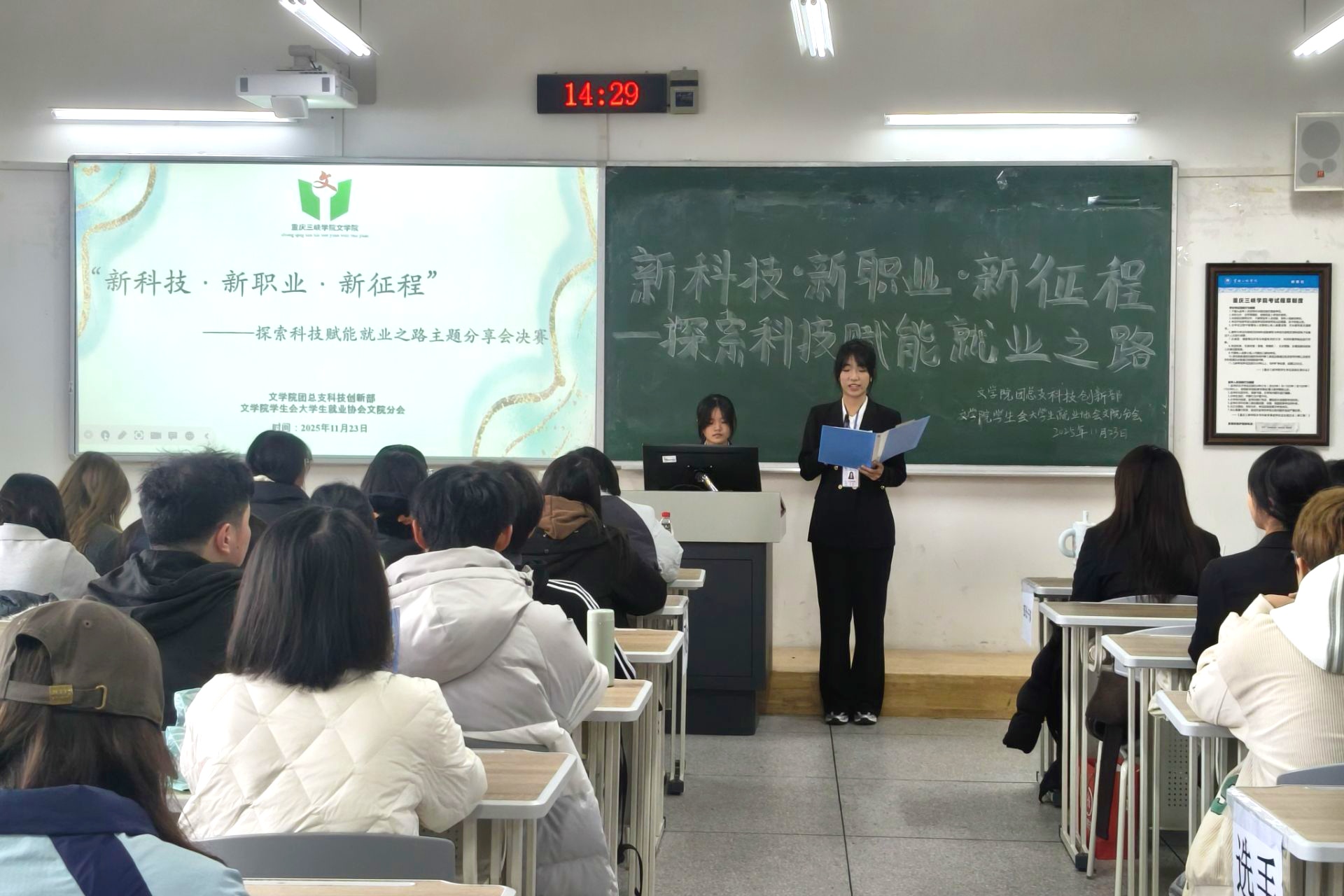 为探讨科技对教育、职业的影响及文科与科技结合的路径,帮助员工了解文科就业方向,11月23日,永利3044noc科技创新部联合老员工就业协会文院分会在博学楼1栋103室成功举办“新科技·新职业·新征程”——探索科技赋能就业之路主题分享会决赛。永利3044noc团总支(员工)副书记徐梦珂、员工会主席团成员汤雨欣和何倩、科技创新部部长刘诗颖受邀担任嘉宾评委。