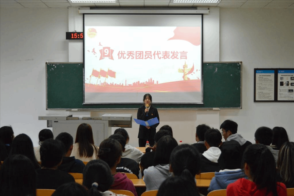优秀团支书代表钟代灿和优秀团员代表申朋鑫发言。他们表示:“我们应当在共青团的队伍里,不断地锻造、磨炼自己,以自己的行动去实现一个共青团员曾经对组织许下的誓言”。作为新时代青年的我们,要心中有理想、身上有本领、肩上有担当,勇做时代的弄潮儿!