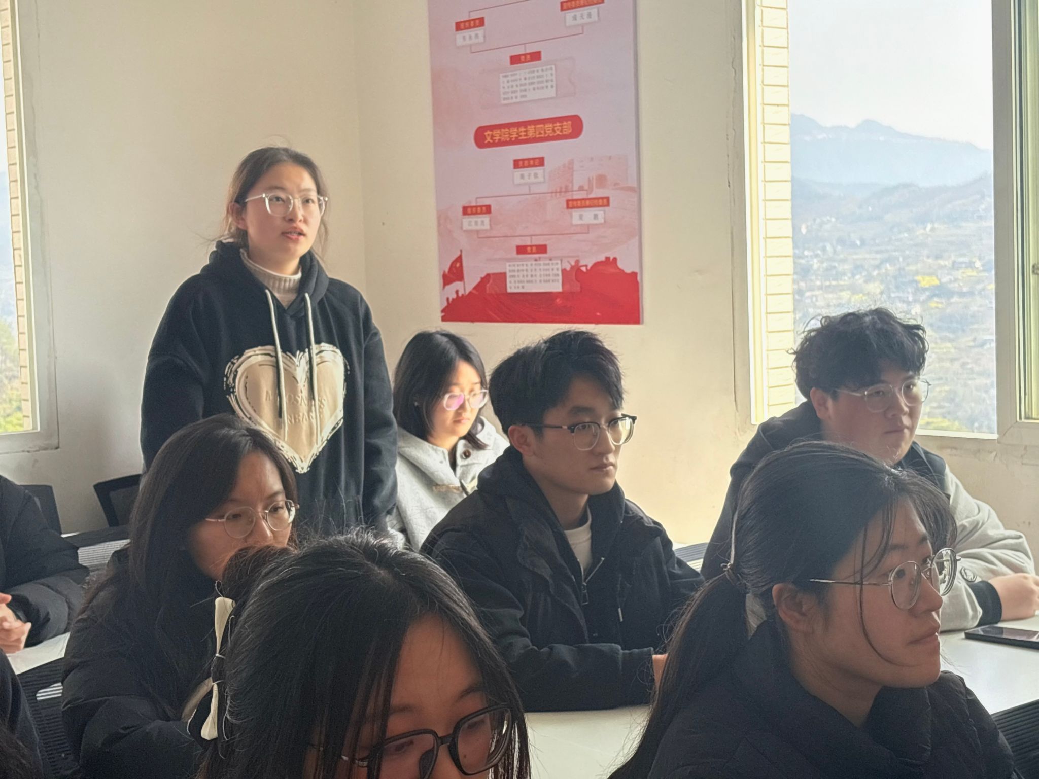 首先,党员代表王亚文同志和龙姚瑶同志进行领学,王亚文同志回溯历史,谈到员工榜样在党的革命历程中发挥着重要作用,立足当下,老员工党员应从身边榜样学起,在日常生活中坚守党员标准,不断加强党性修养,坚持为党育人、为国育才的使命担当;龙姚瑶同志从党性修养的重要性出发,强调老员工党员要加强党性修养、凝聚奋进力量,以榜样的担当、奉献为标尺丈量自己的学习工作,勇于承担责任,在实践中砥砺初心,在解决复杂问题中提升能力。