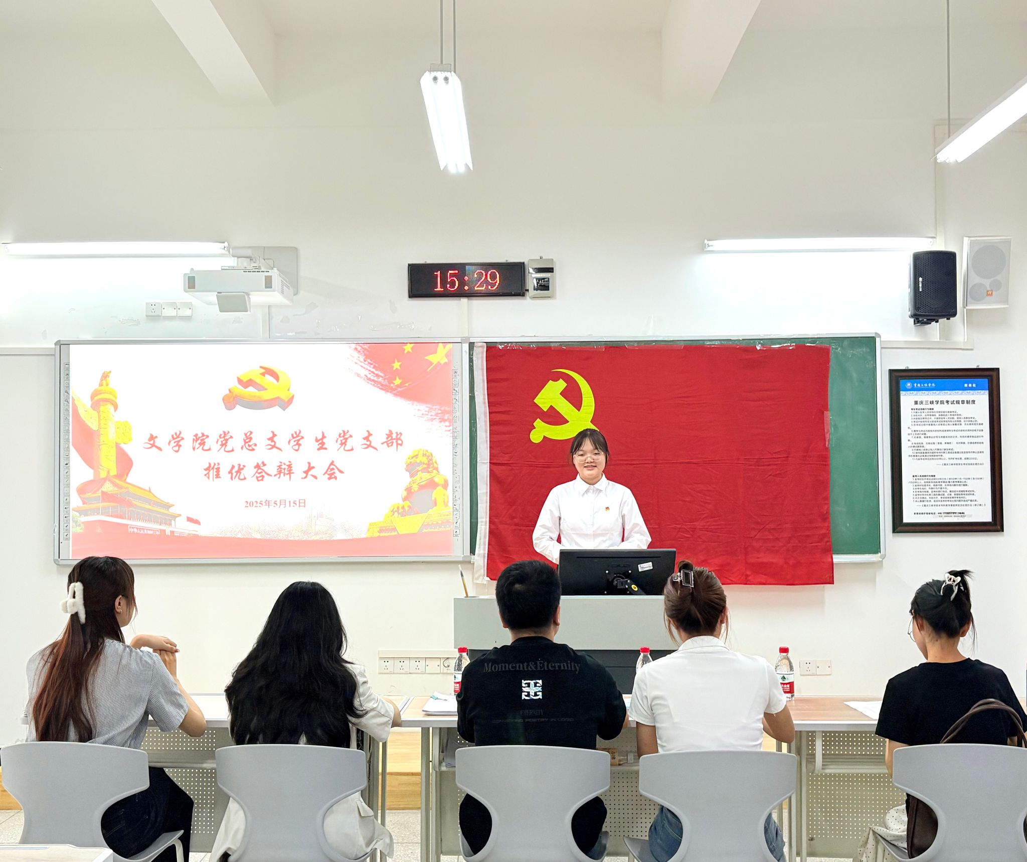 会上,发展对象围绕入党动机、个人情况、个人优缺点等方面进行了阐述,从理想信念、党的理论知识和时政热点等方面进行答辩。徐僡同志结合自身经历对工作、学习等方面的表现进行了全面的总结,表示在未来工作、学习中会坚持发挥自身先锋模范作用,坚定理想信念,在工作中实现自我价值,成长为有理想、有作为、能吃苦、敢担当的时代新人。刘丹同志从志愿服务和社会实践经历出发,阐述了对党的宗旨的深刻理解,表示将一如既往高标准要求自己,不断增强党性修养,用实际行动践行初心使命。